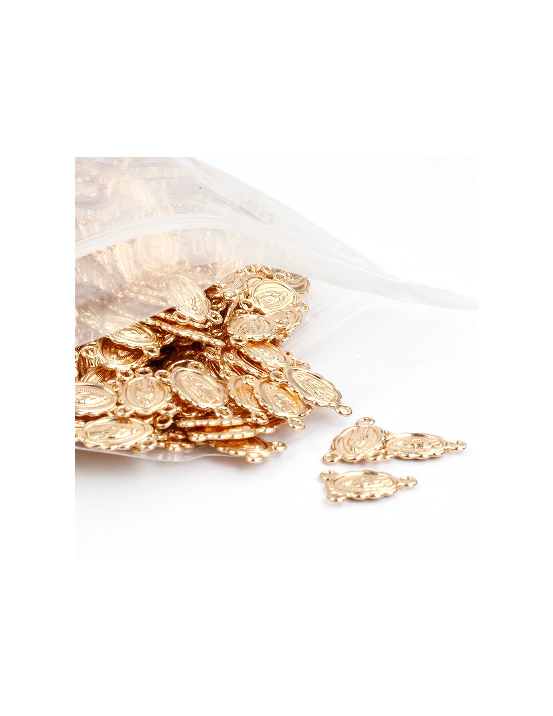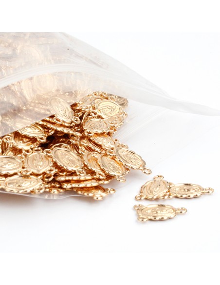 Fundición dorado con forma de medalla de virgen con triple agarre.
