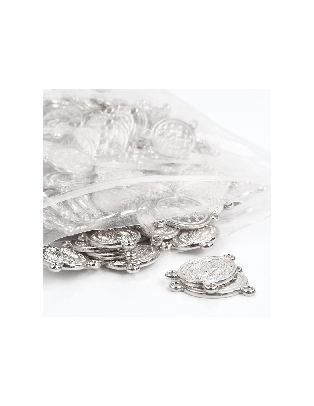 Fundición níquel con forma de medalla de virgen de Guadalupe con triple agarre.