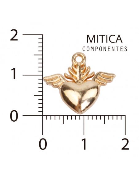Fundición dorada con forma de corazón con alas.
