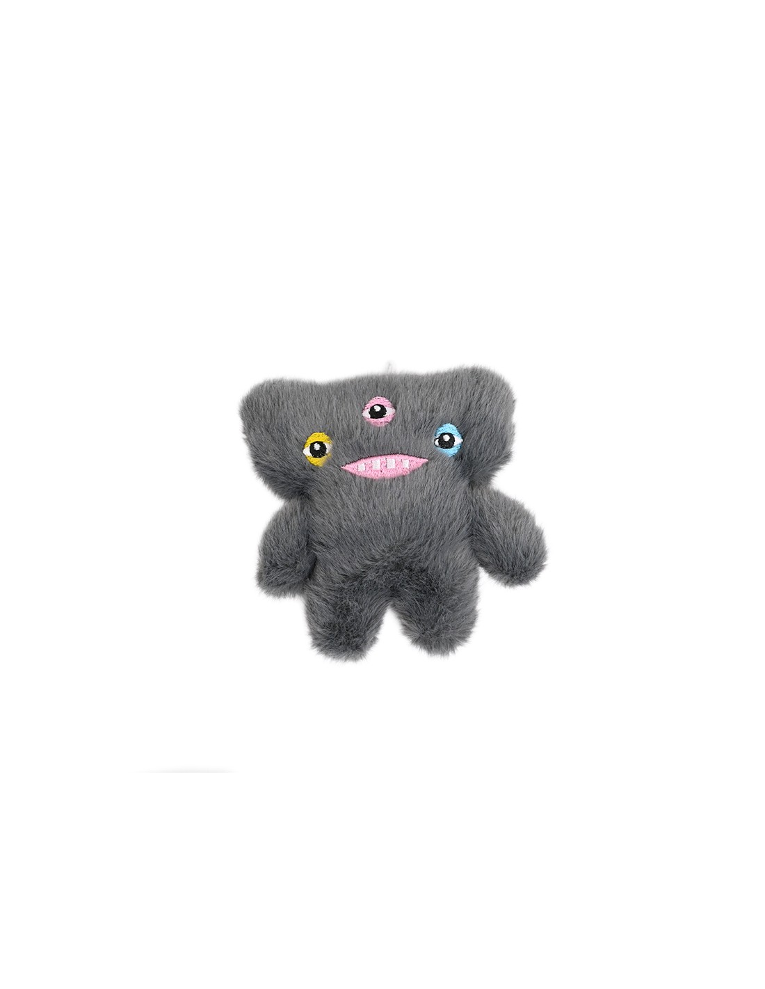 Peluche con agarre para llavero con forma de mounstrito de color gris.