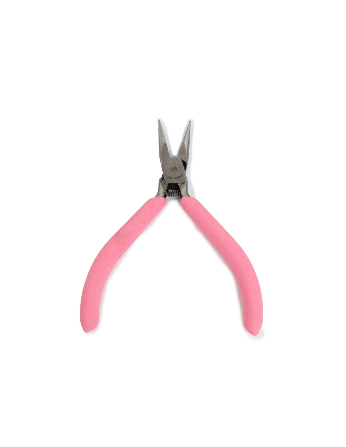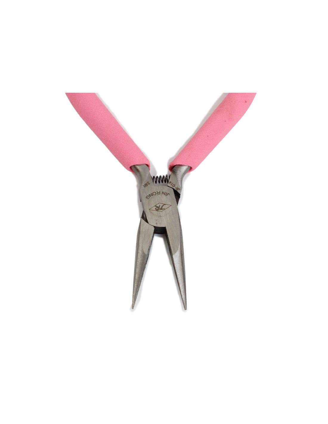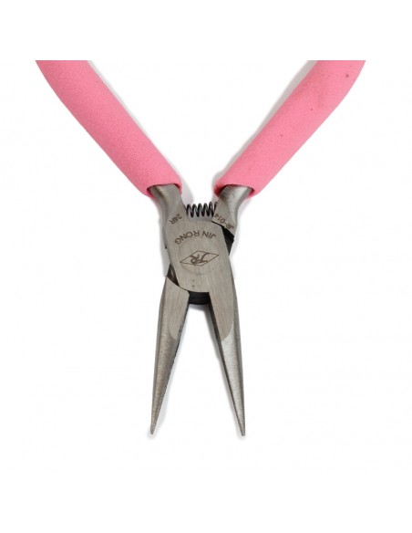 Pinza de punta sin dientes, con resorte y mango cubierto de goma siliconada.