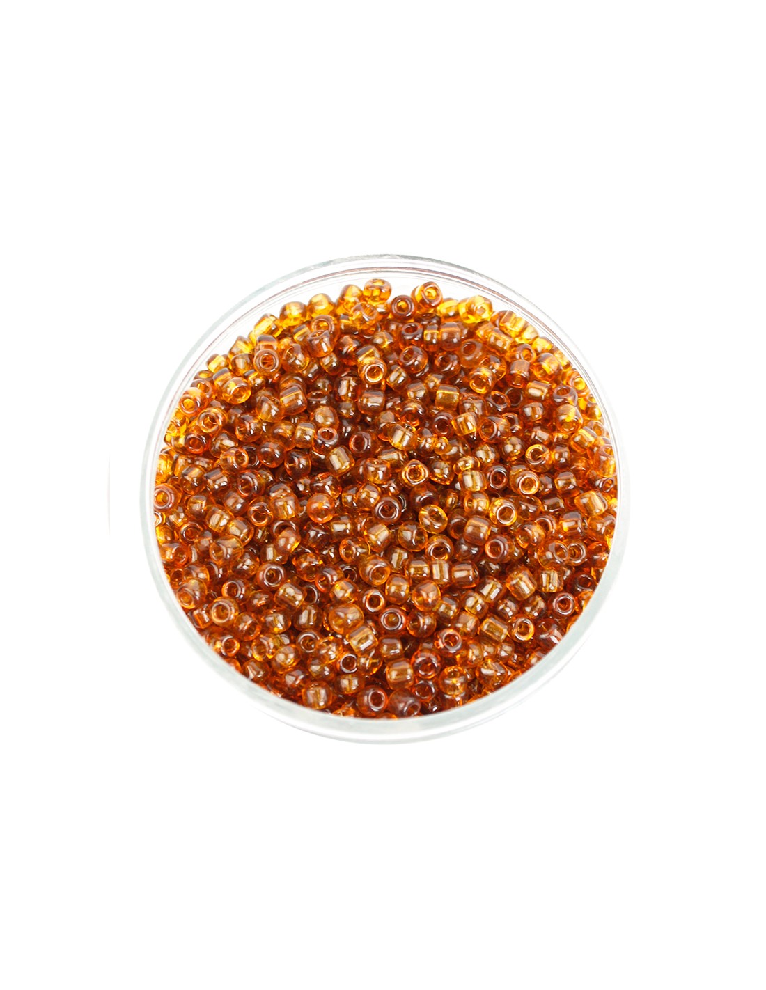 Mostacillo redondo de vidrio en color carey transparenté de 0,4 cm.