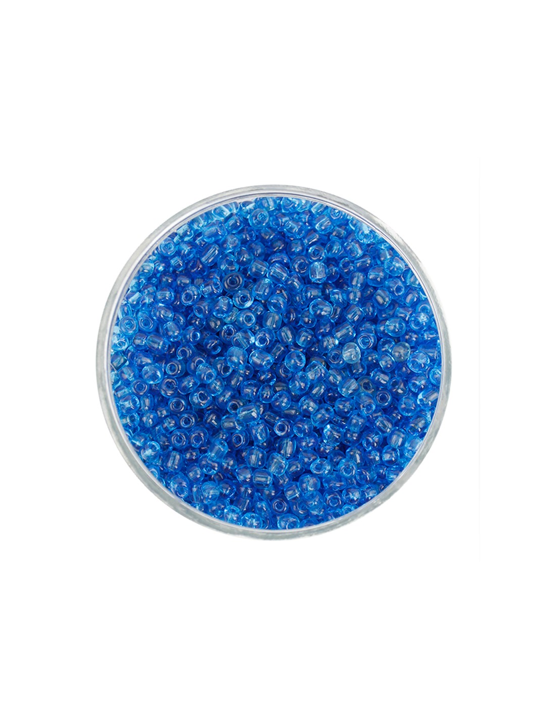 Mostacillo redondo de vidrio en color azul transparenté de 0,4 cm.