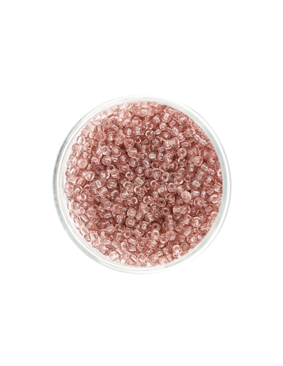 Mostacillo redondo de vidrio en color violeta transparenté de 0,4 cm.
