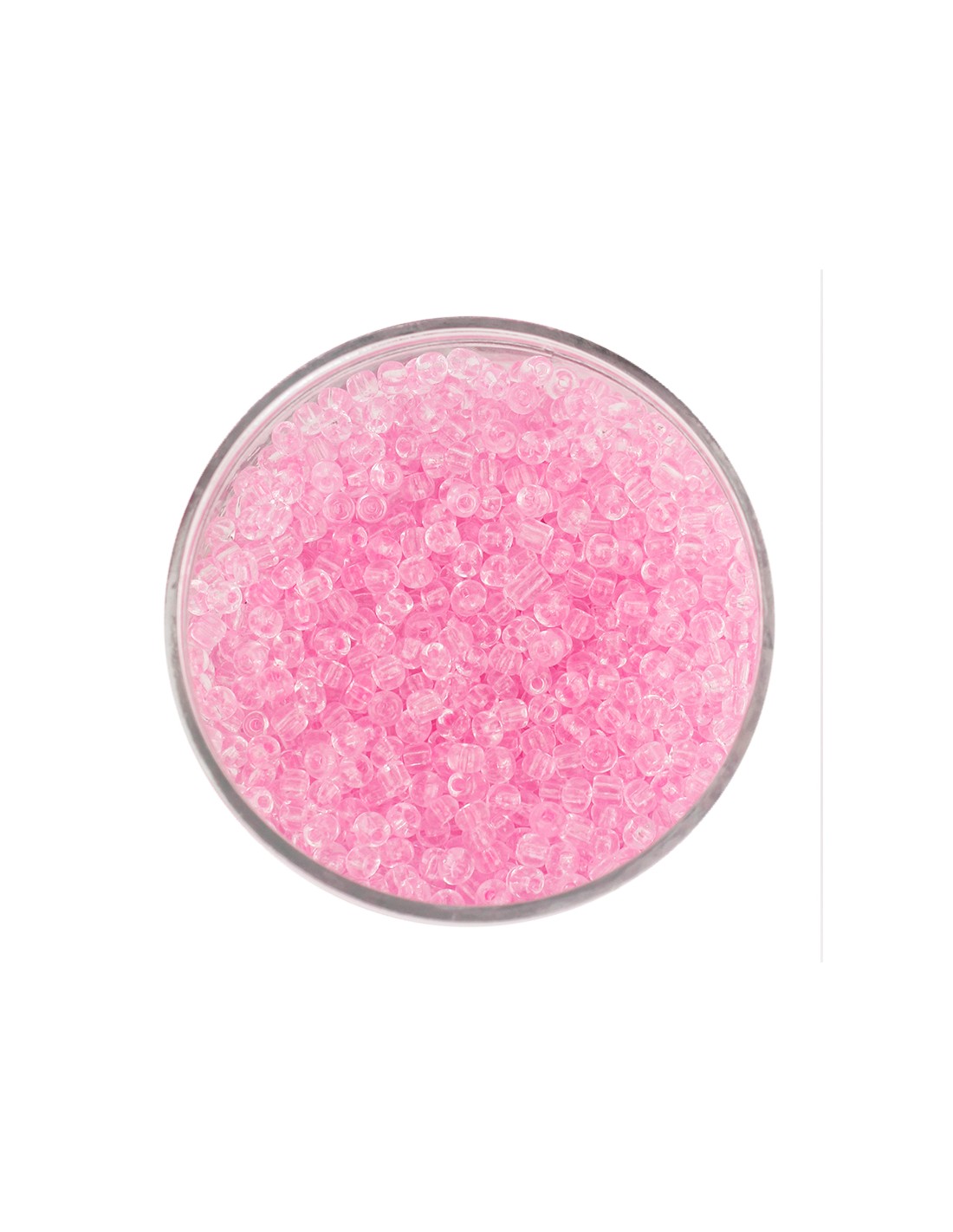 Mostacillo redondo de vidrio en color rosa transparenté de 0,4 cm.