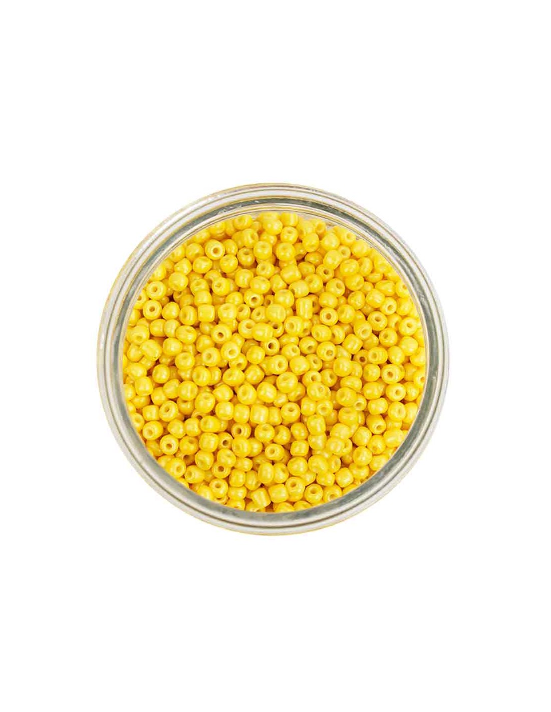 Mostacillo redondo de vidrio en color amarillo metalizada de 0,4 cm.