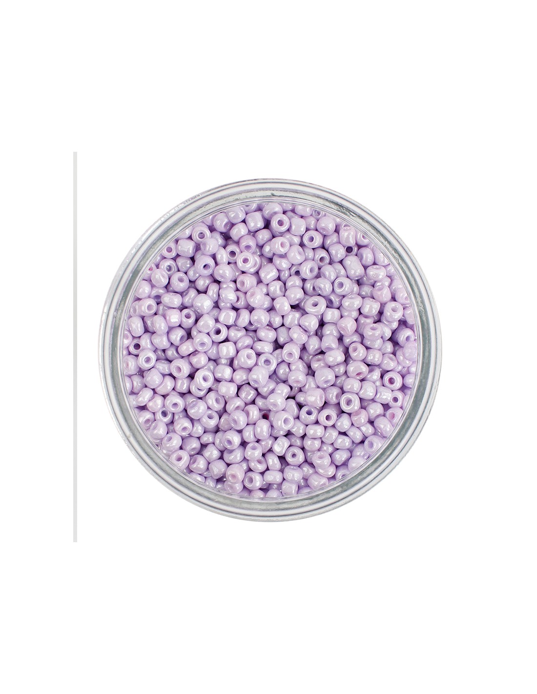 Mostacillo redondo de vidrio en color lila pastel metalizada de 0,4 cm.