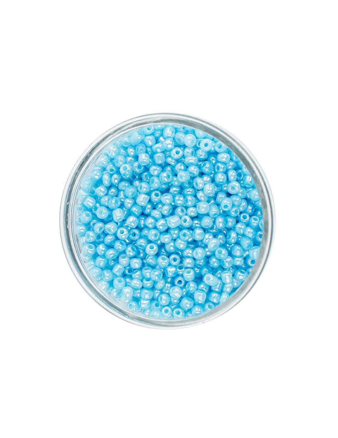 Mostacillo redondo Brilloso de vidrio en color cyan de 0,4 cm.